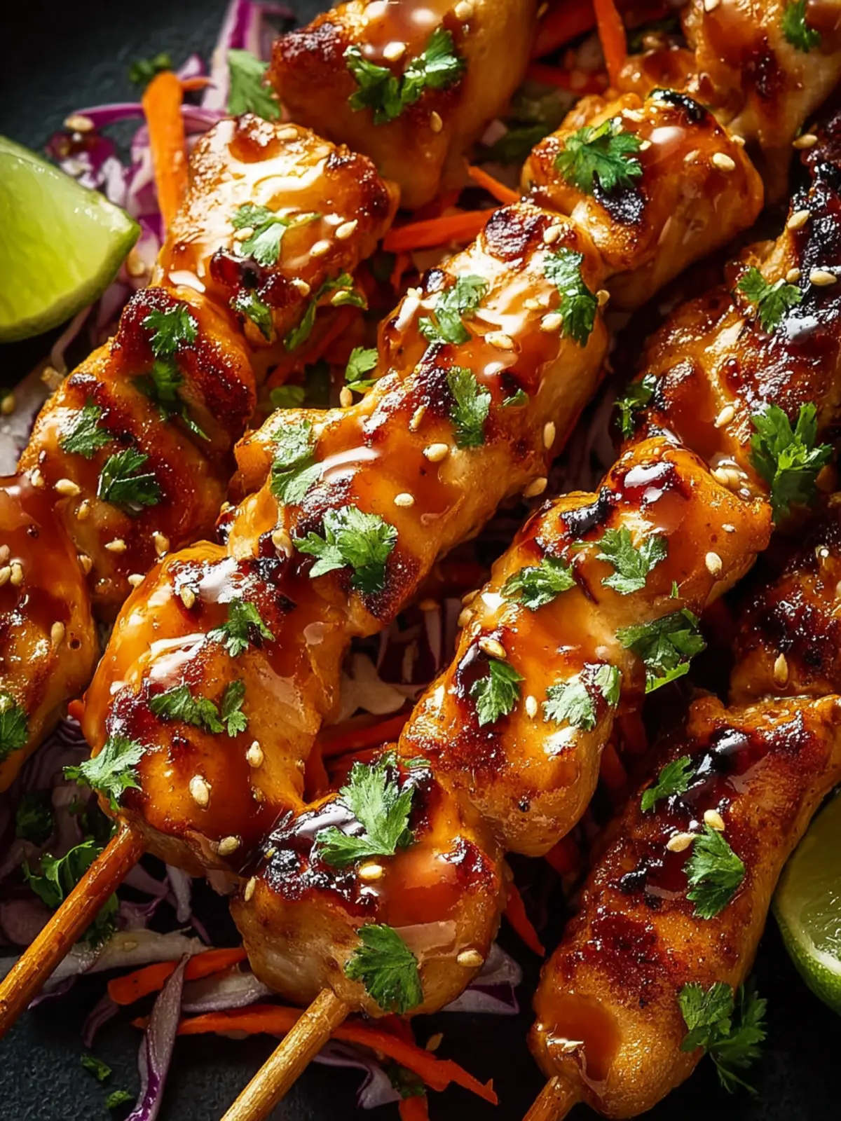 To keep your Bang Bang Chicken Skewers from sticking, soak wooden skewers in water for at least 30 minutes before threading on the chicken. This simple trick helps prevent them from catching fire on the grill and also makes for an easier cooking process.