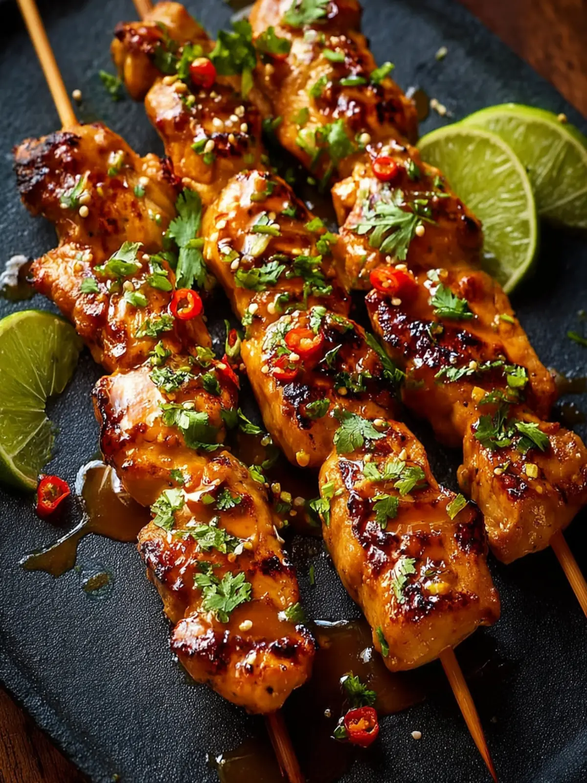 Marinade: The chicken is marinated in a flavor-packed concoction that includes garlic, ginger, and soy sauce, infusing every bite with depth and richness. If you let it marinate for a few hours, the flavor intensifies and makes each skewer a treat.