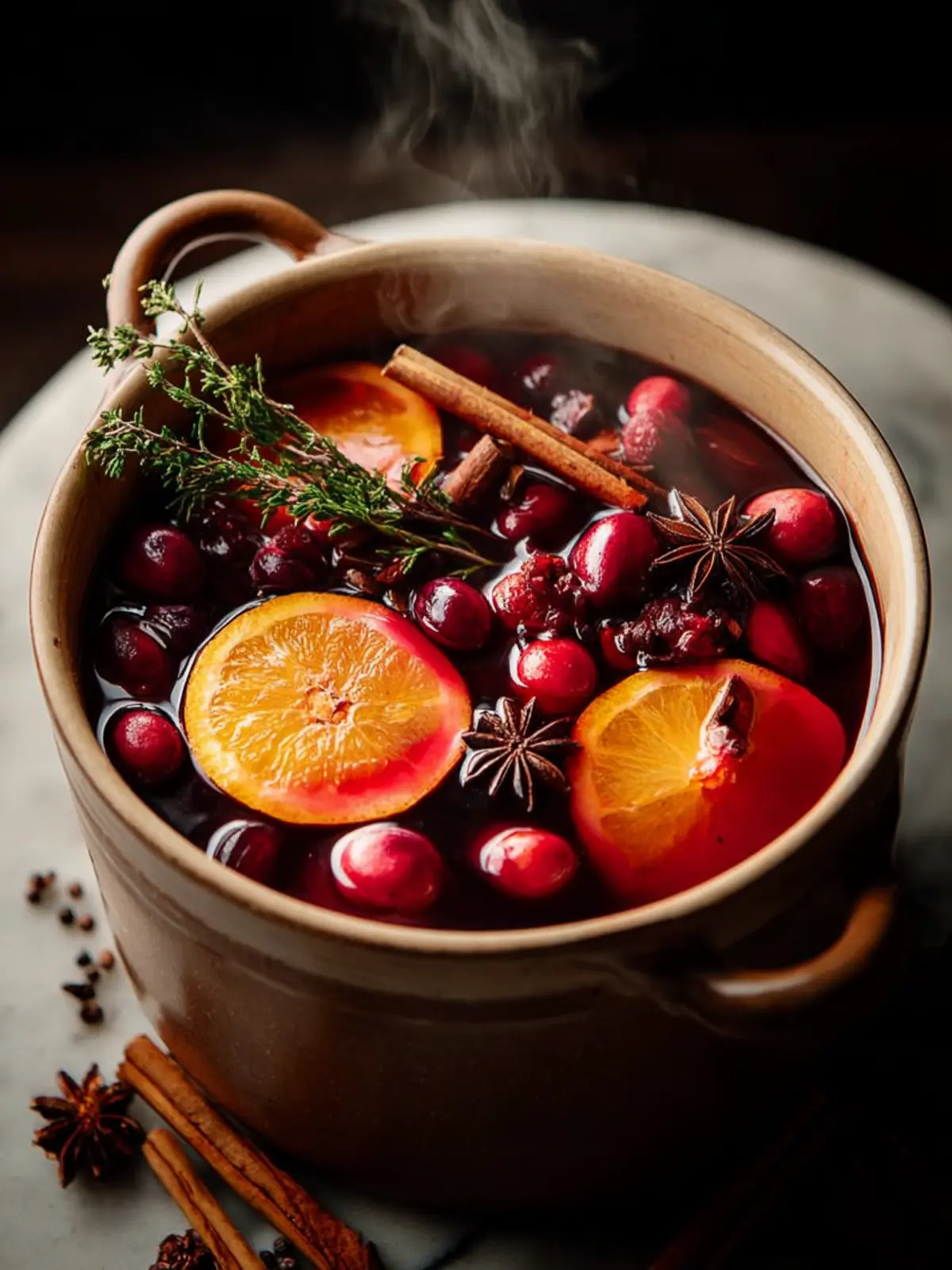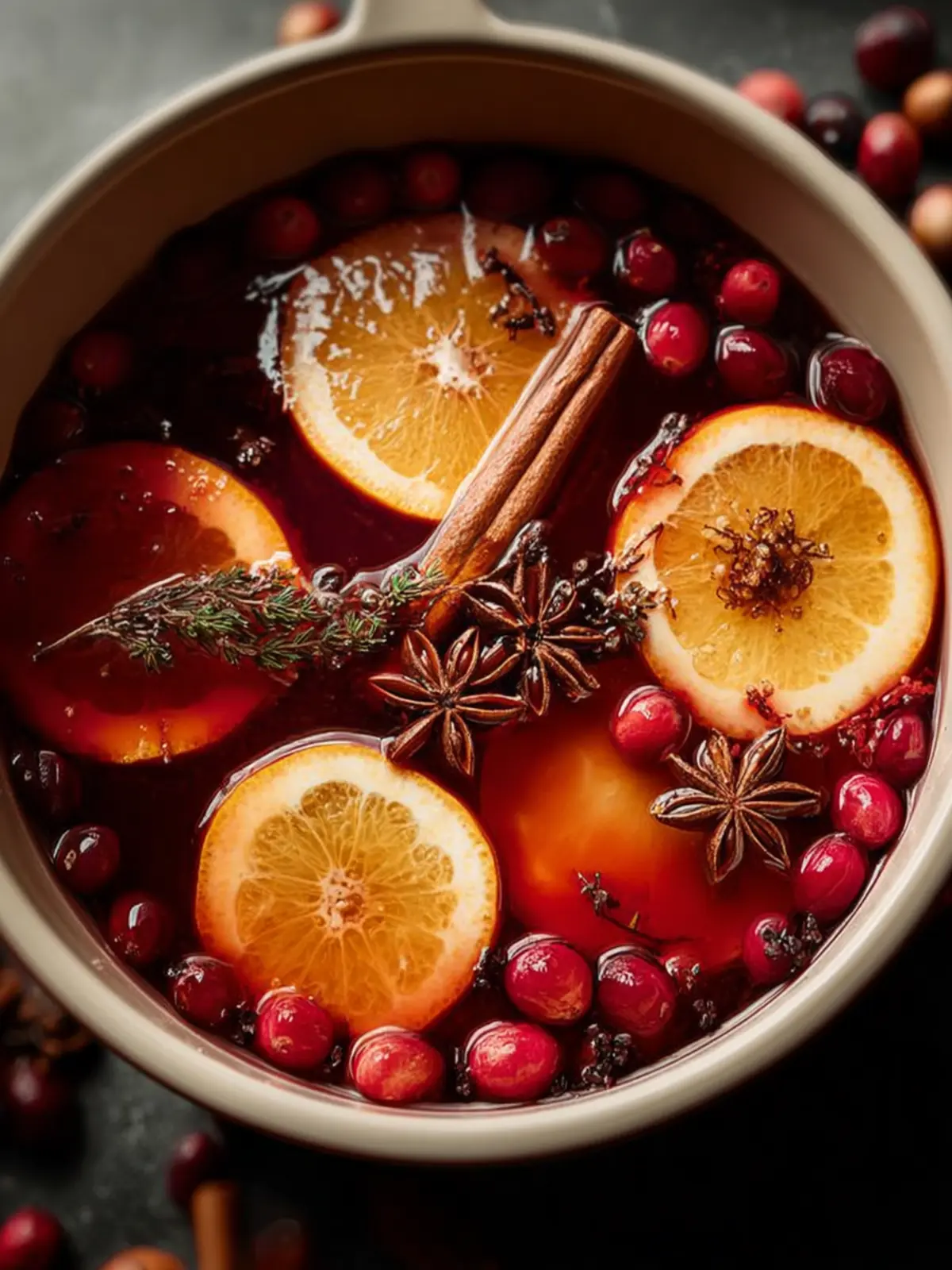 A fragrant simmering mixture of cranberries and orange perfect for the holiday season.