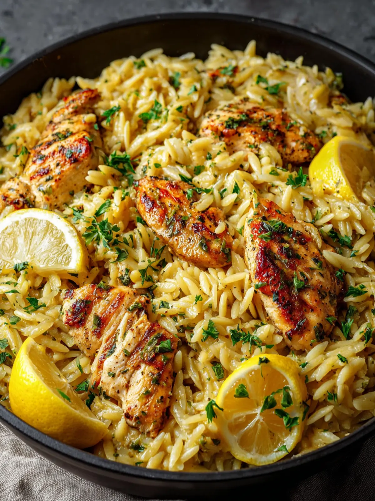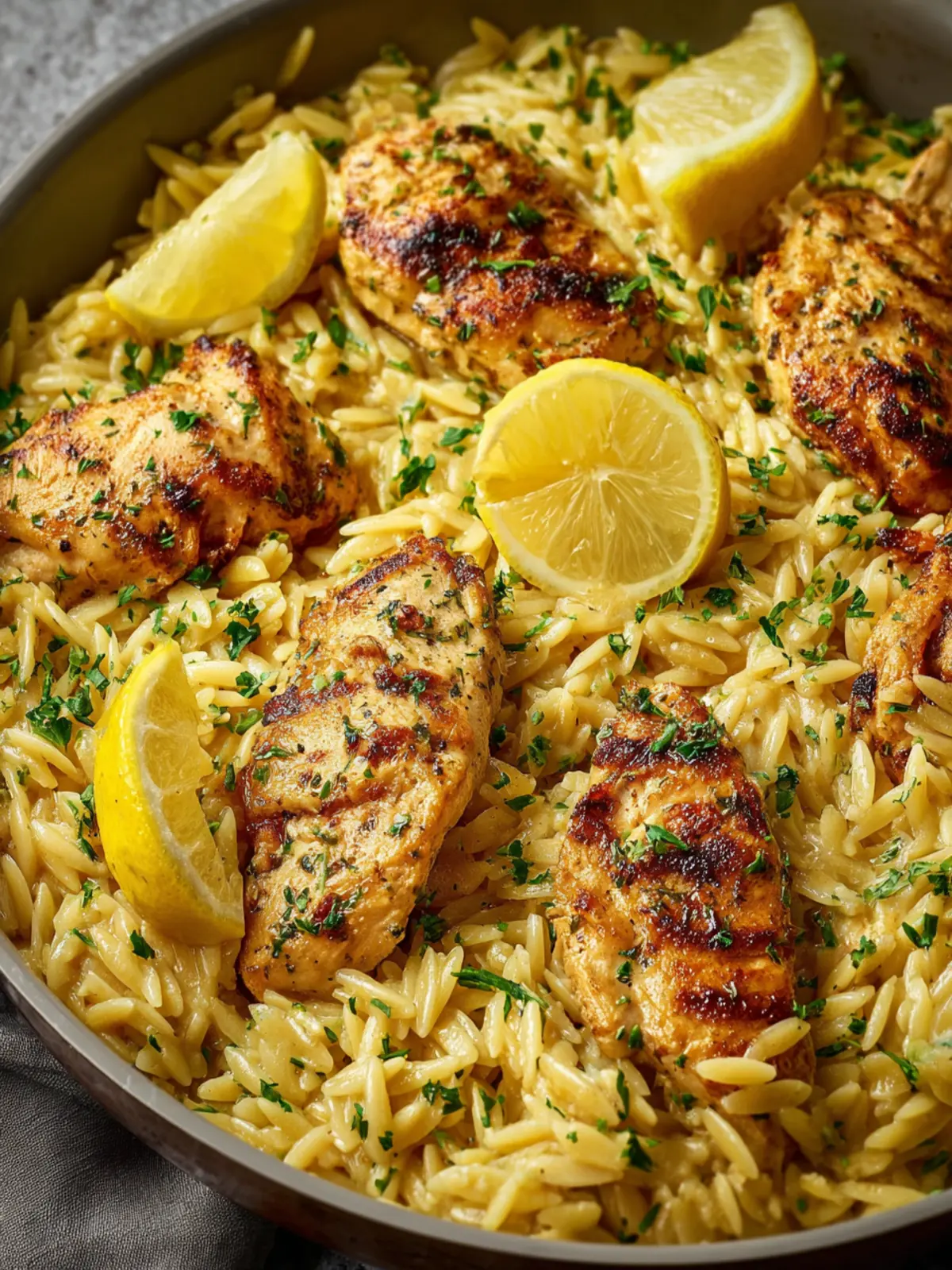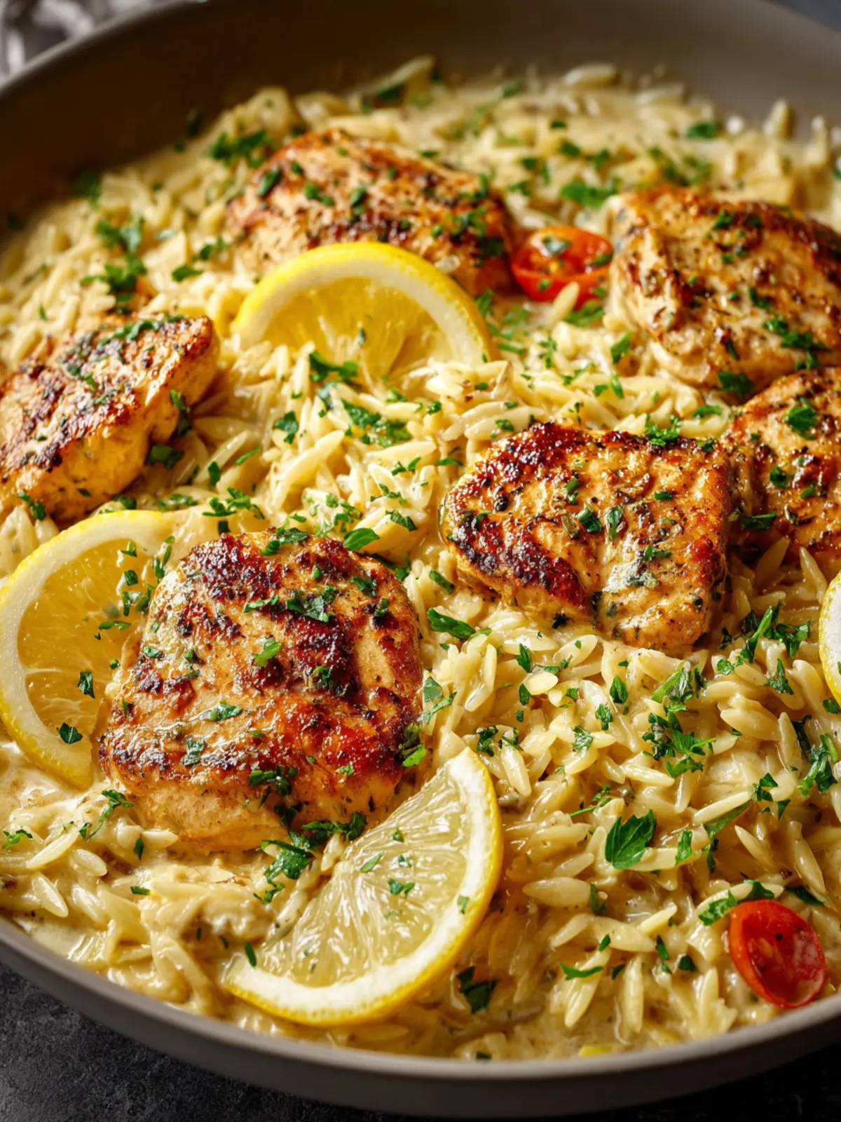 A delicious and creamy lemon chicken orzo dish that combines tender chicken, orzo pasta, and fresh herbs for a delightful meal.