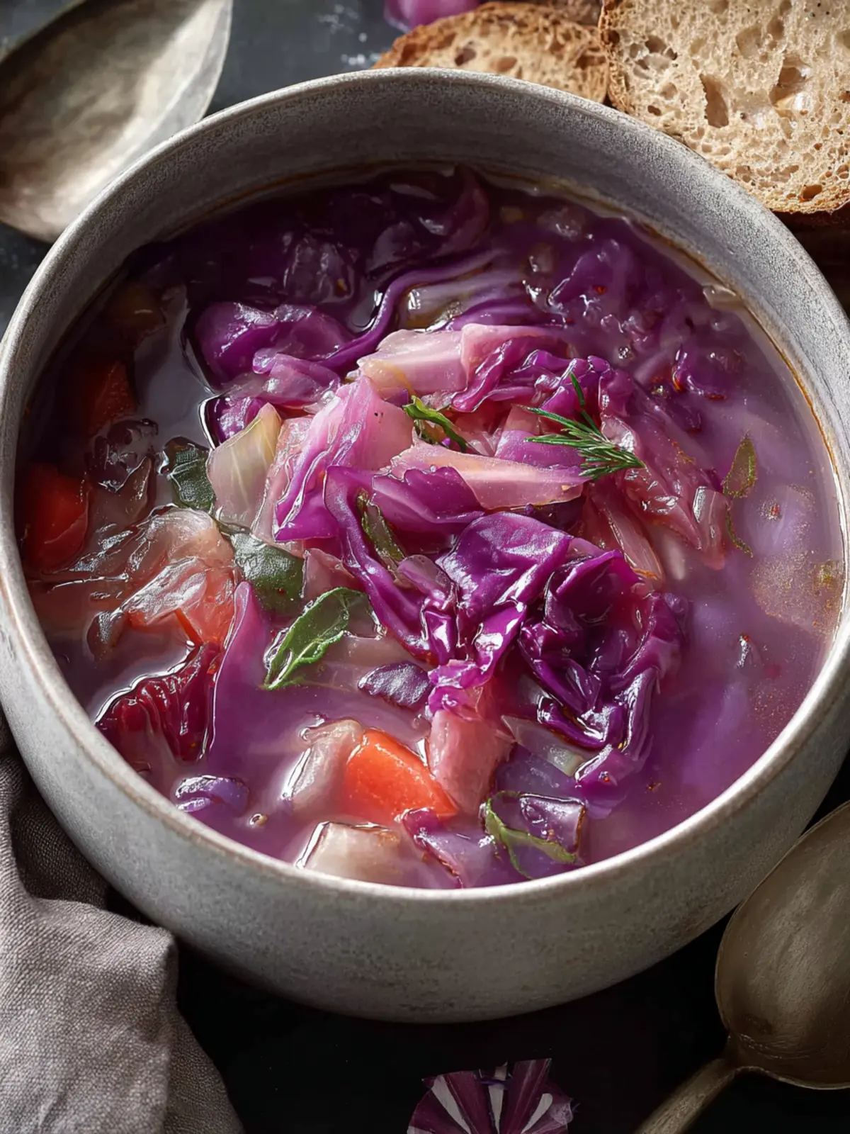Delicious red cabbage soup is a delightful way to incorporate nutritious ingredients into your diet. Red cabbage itself is a powerhouse of vitamins K and C, packed with antioxidants, and boasts impressive anti-inflammatory properties. It’s not only visually stunning with its deep purple hue, but it also contains fiber that promotes gut health, making it a fantastic addition to your meals.