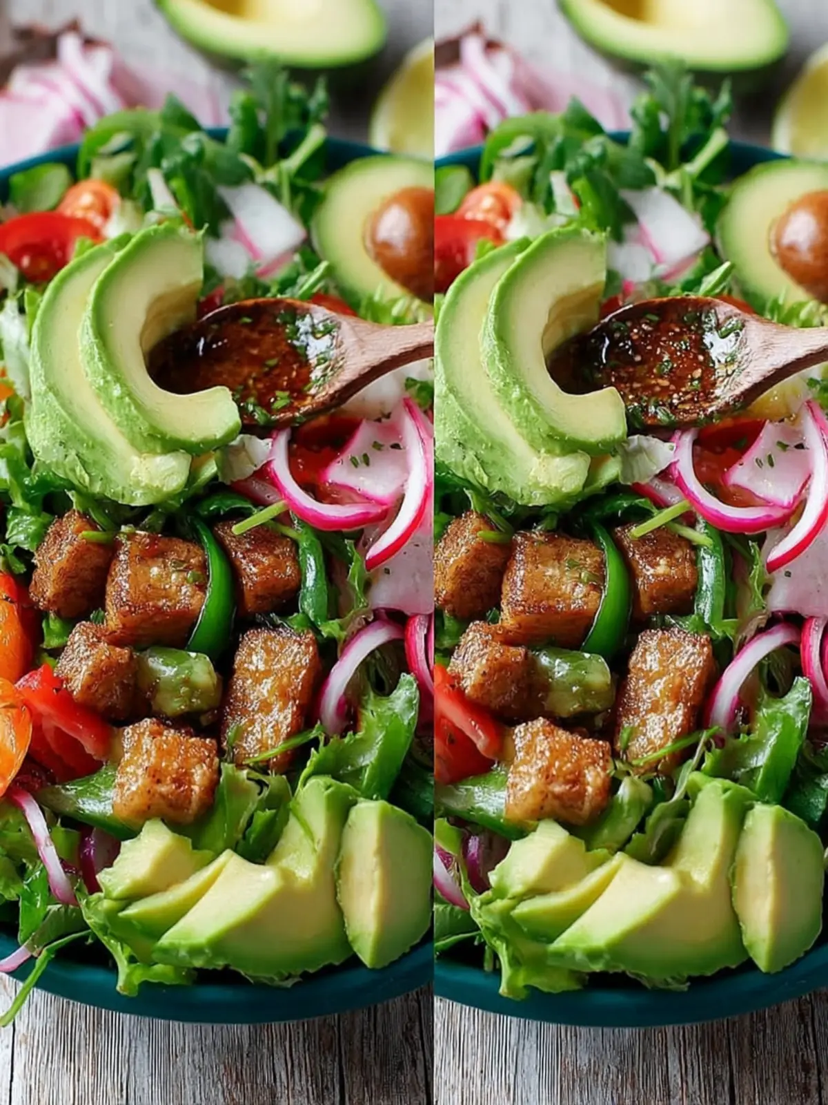 To make your salad heartier, try incorporating grilled chicken or chickpeas. Both options provide a satisfying protein boost without overpowering the fresh flavors of the avocado and vegetables. If you’re leaning towards plant-based, roasted lentils are an excellent choice, adding an earthy flavor and delightful crunch.