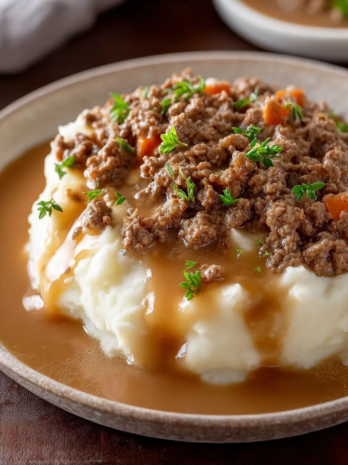 Hearty Satisfaction: There’s something utterly filling about the combination of tender ground beef, savory gravy, and creamy mashed potatoes. It’s the sort of meal that warms you from the inside out.