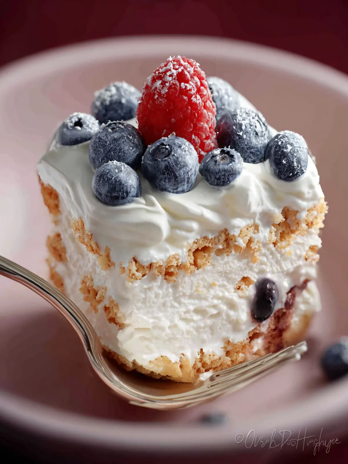 A delicious layered dessert featuring cream cheese, blueberries, and graham crackers.