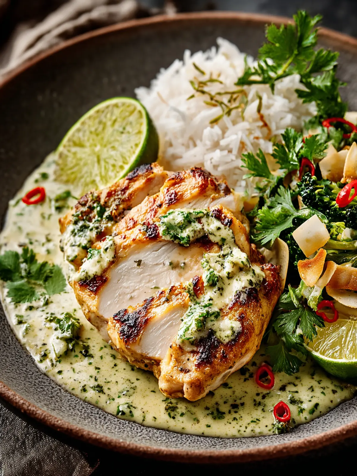 This Coconut Lime Chicken is a flavorful dish featuring marinated chicken breasts cooked in a creamy coconut sauce with lime and cilantro.