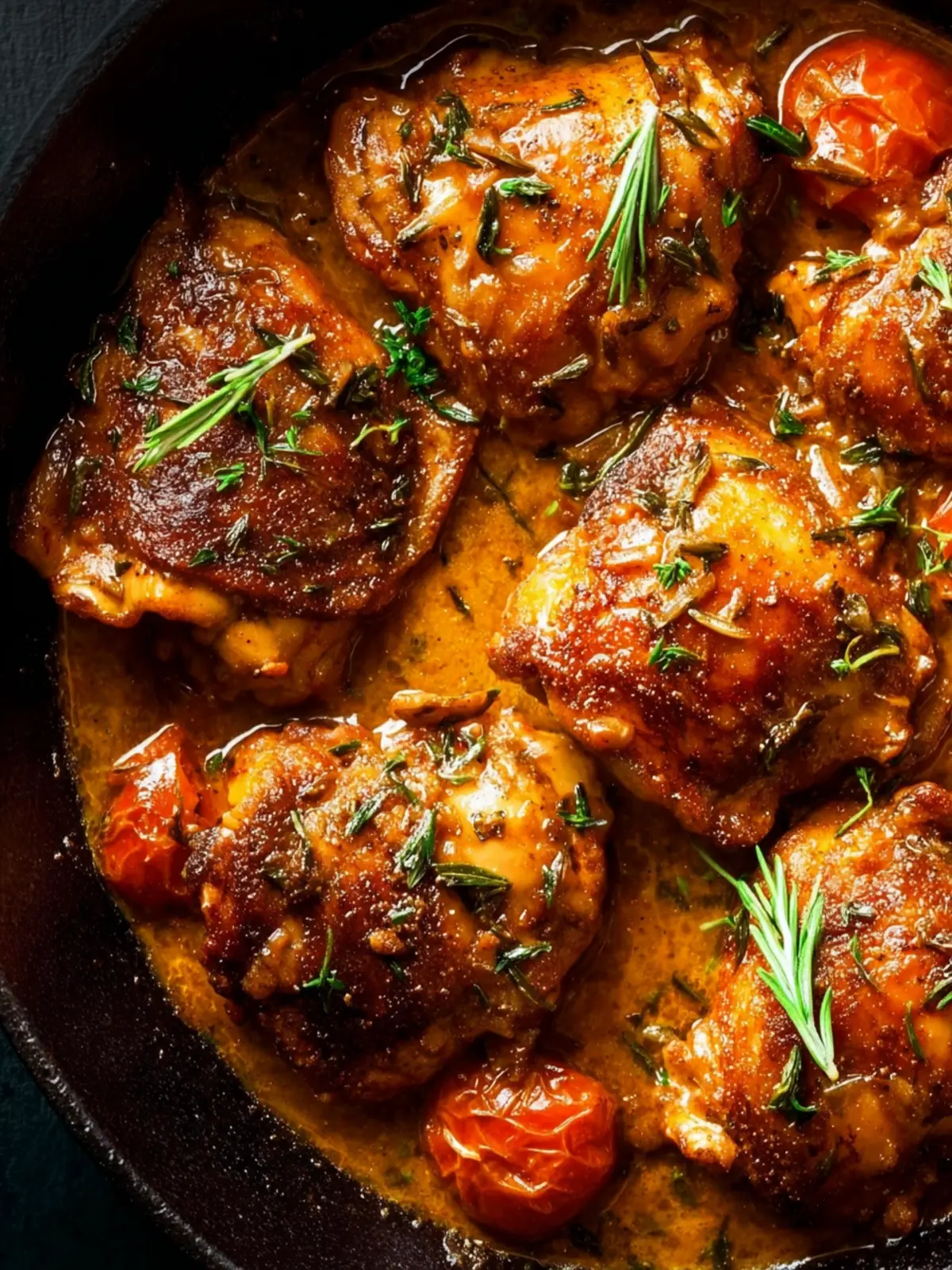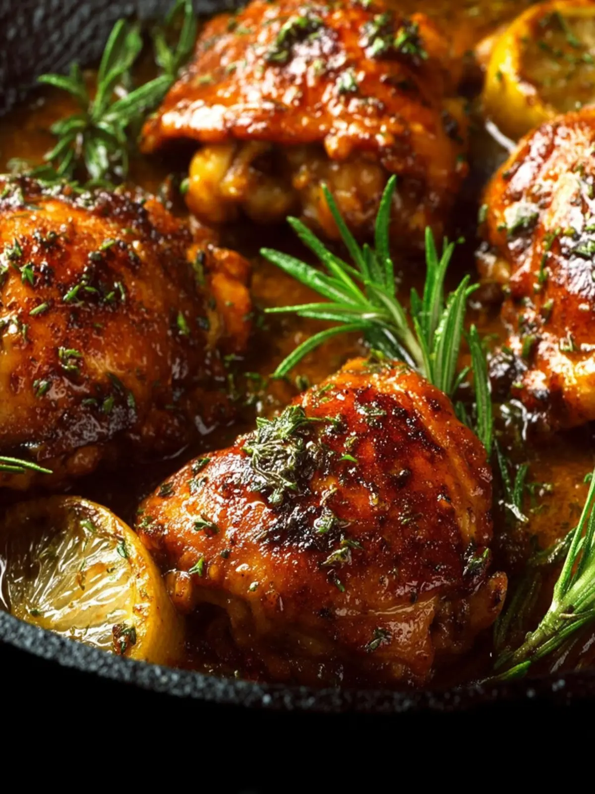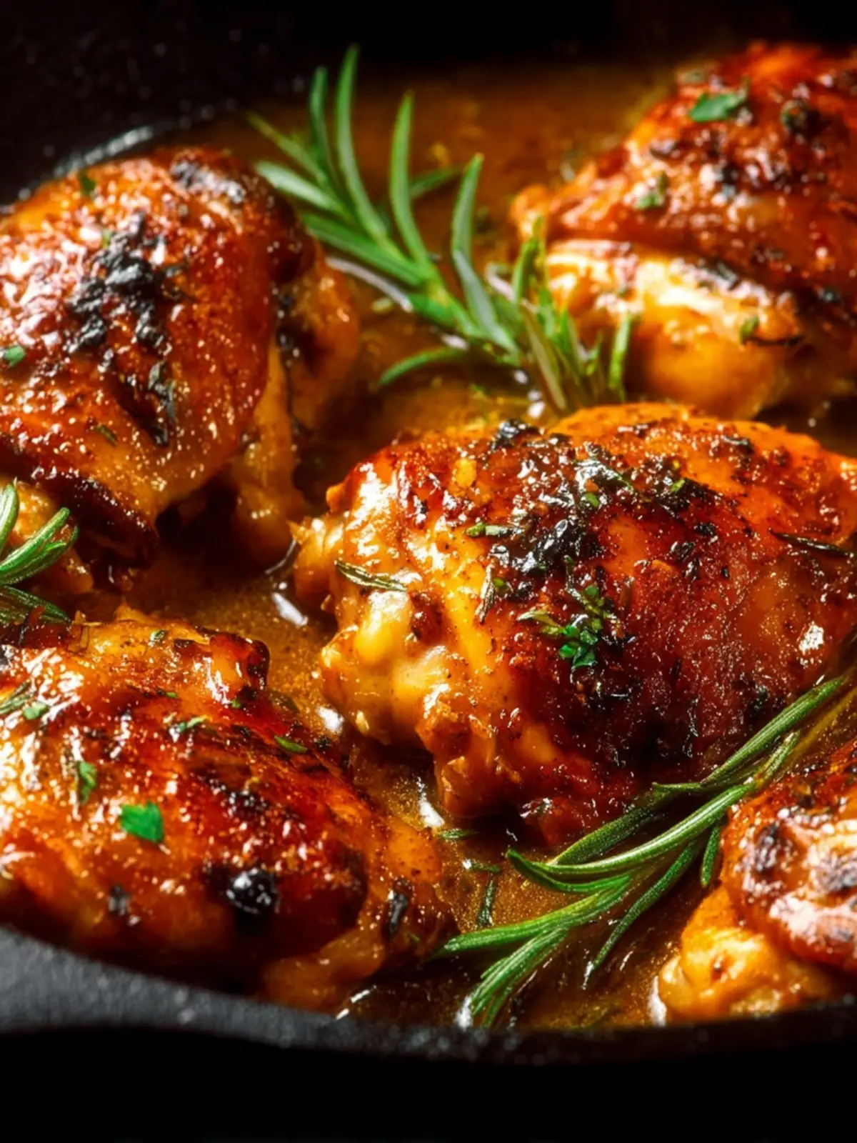 Delicious and easy honey garlic chicken thighs cooked with fresh rosemary and garlic.